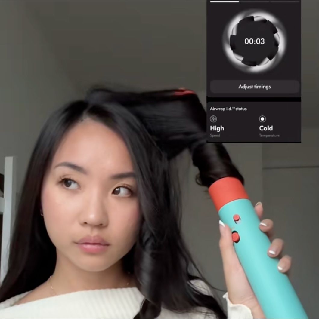 Once connected to the MyDyson™ app you set up your hair profile. This contains the information required to create a personalised styling sequence (i.d. curl™) with the ideal timings to wrap, curl and set your hair. Once the power button is pushed all the way up, i.d. curl™ sequence will activate and the sequence will begin.